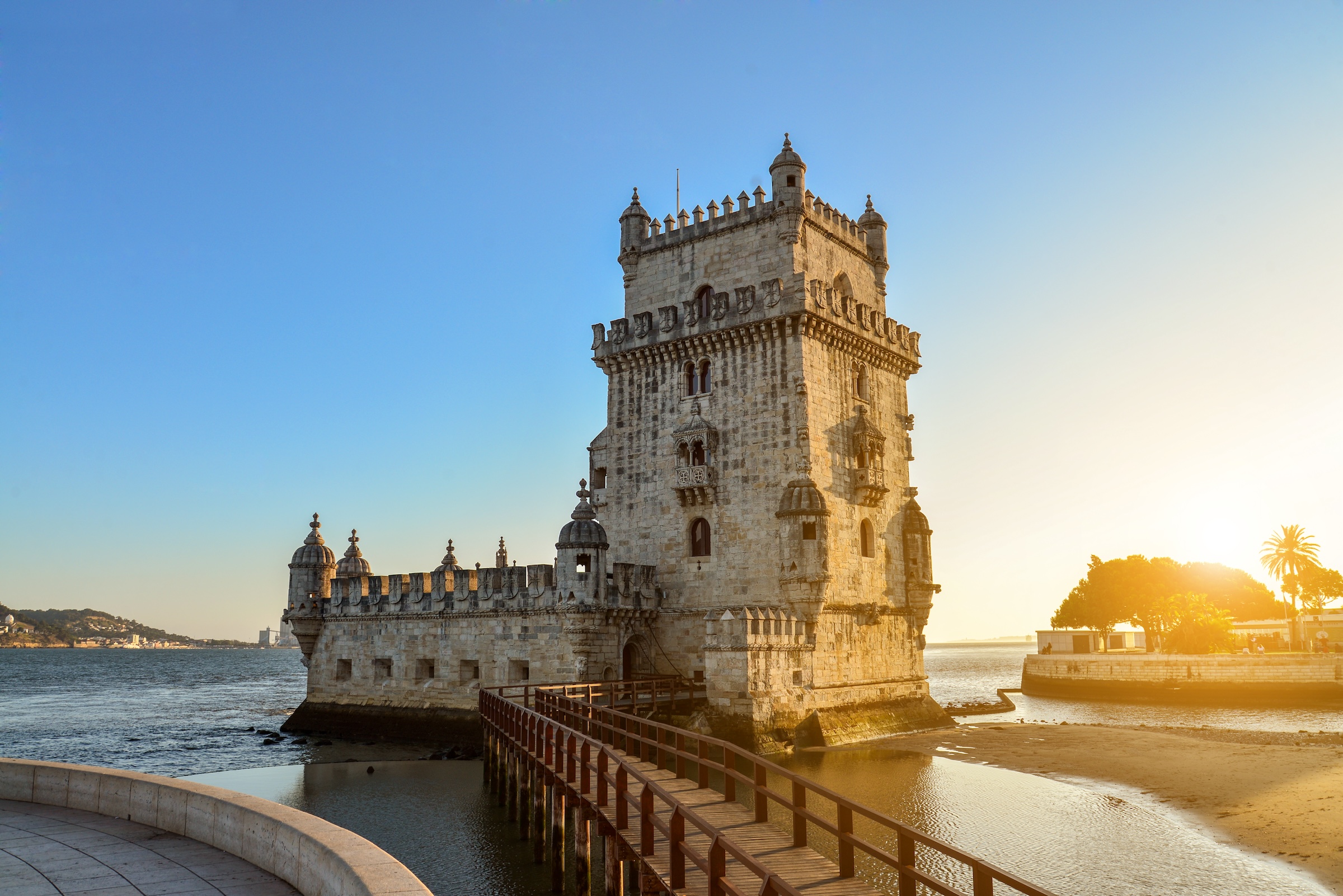 La famosa Torre de Belém (completata nel 1514) sulle rive del Tago è un simbolo di Lisbona e patrimonio dell'umanità dell'UNESCO. Questo mix di torre di difesa e baluardo fu costruito per proteggere il porto e simboleggia l'Età delle Scoperte del Portogallo. Le decorazioni manueline, come lo stemma reale, la sfera armillare e la croce dell'Ordine di Cristo sulla torre, sono impressionanti.